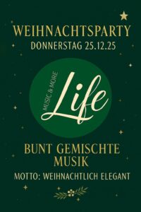 WEIHNACHTSPARTY Posted on Dezember 16, 2025 by Life Discoteque in Termin Details Datum: 25. Dezember 2025 21:00 – 26. Dezember 2025 1:30 Ort: DiscoLife Bruneck